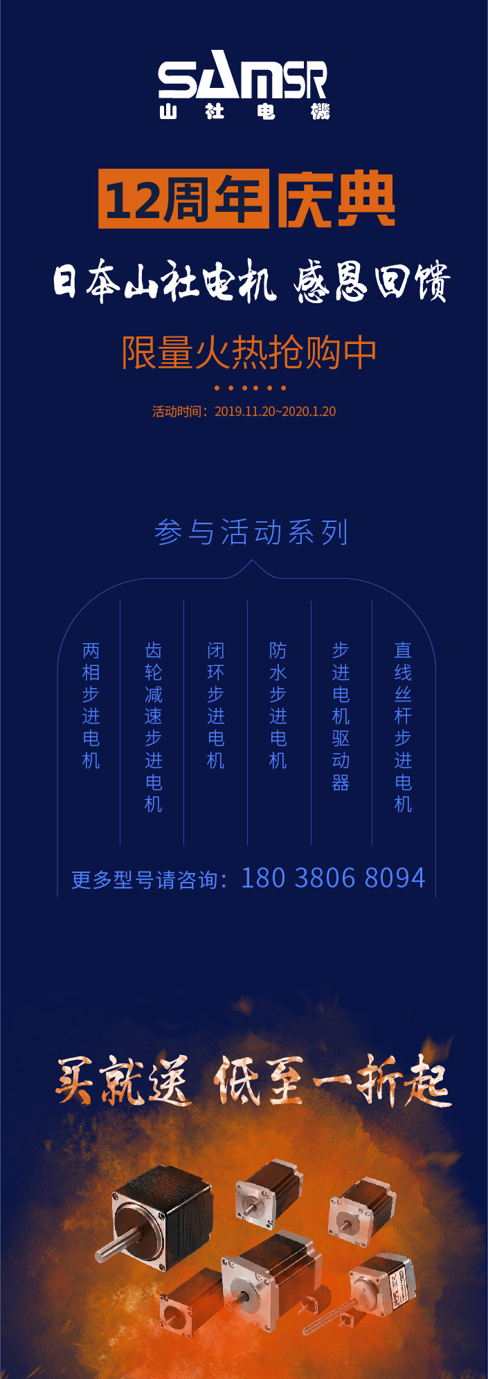 山社電機(jī)感恩回饋客戶,值此辭舊迎新之際,山社步進(jìn)電機(jī)限時(shí)折扣,部分型號(hào)低至一折起,下單即送小禮品。