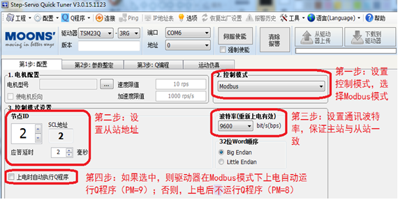 使用環(huán)境:用的是鳴志TSM23Q-3RG(集成式步進(jìn)伺服電機(jī),電機(jī)與步進(jìn)電機(jī)驅(qū)動(dòng)器一體機(jī))