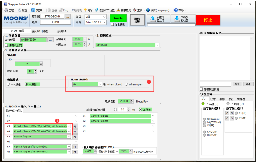 驅(qū)動器上需要配置限位和原點功能,X3 和 X4 接限位,X5~X8 任意一個接原點都可以。