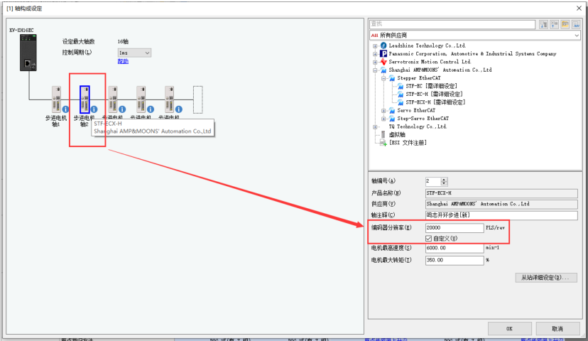 展開列表,選擇一個“STF-ECX-H”驅(qū)動器,并進入從站的詳細設(shè)定界面: