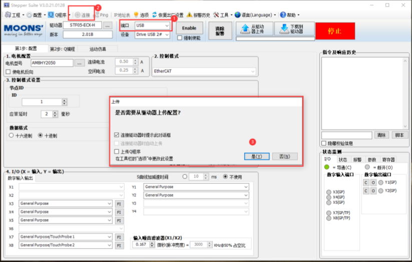 STF-ECX-H 系列驅(qū)動器使用通用的 miniUSB 數(shù)據(jù)線,打開 Stepper Suite 軟件,選擇 USB