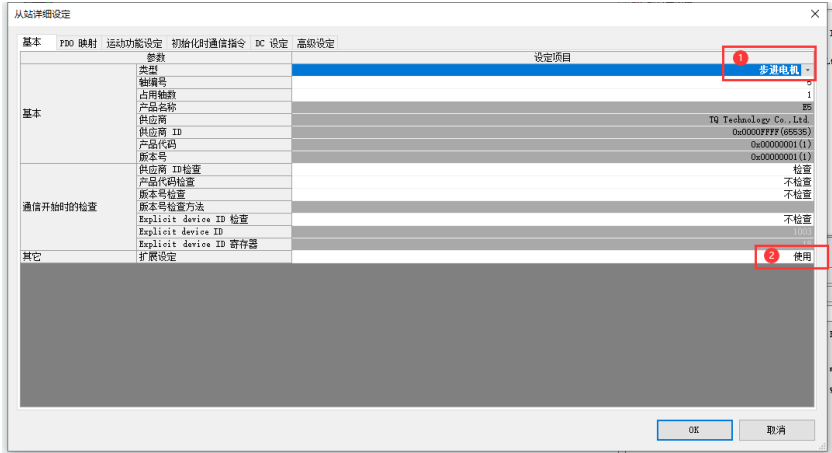 注意:使用擴展設(shè)定,主要是為了將“初始化通信指令”一欄顯示出來,可以在驅(qū)動器進行 CoE