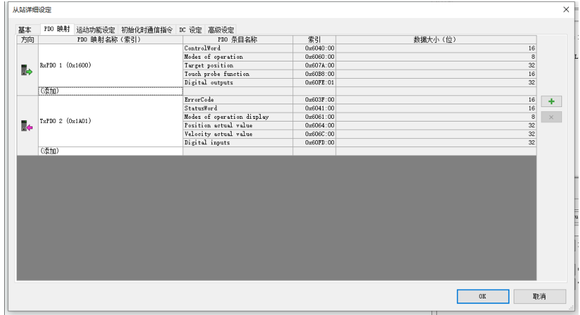 正確的映射 PDO 非常重要。對于鳴志的驅(qū)動器,不需要手動自己映射,輸出映射選擇