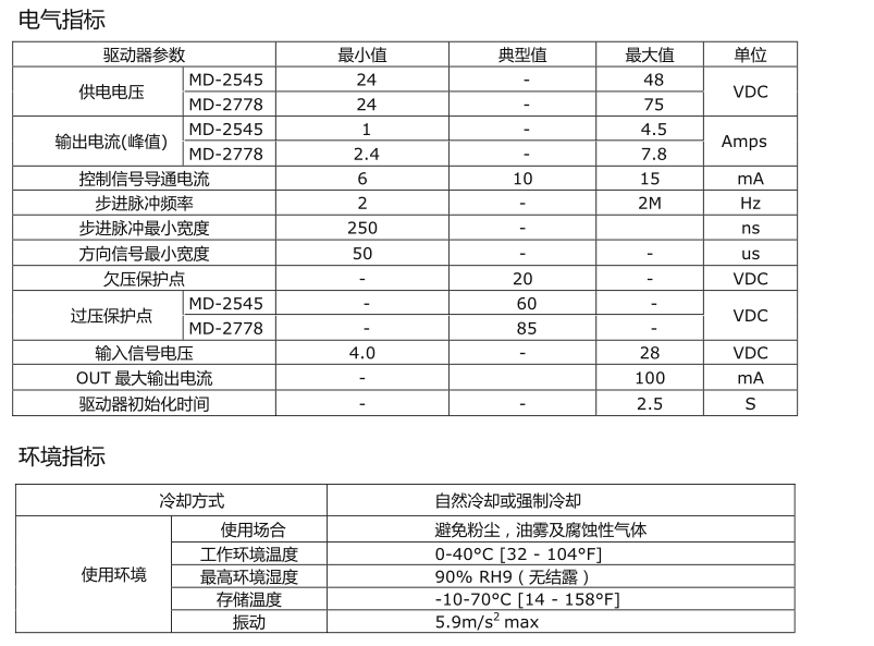 ■兩相步進電機驅(qū)動器MD2545性能指標