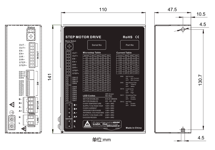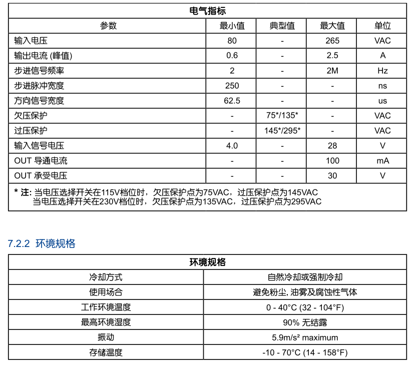 l 運行電流 - 峰值設(shè)置,撥碼開關(guān)可選,8種電流設(shè)置:0.6A, 0.8A, 1.0A, 1.2A, 1.6A,1.8A, 2.0A, 2.5A.