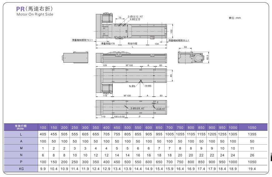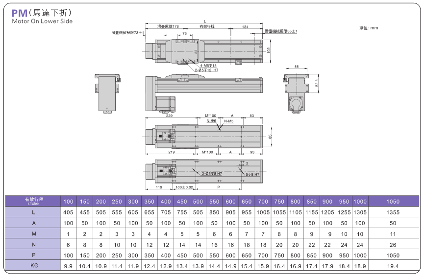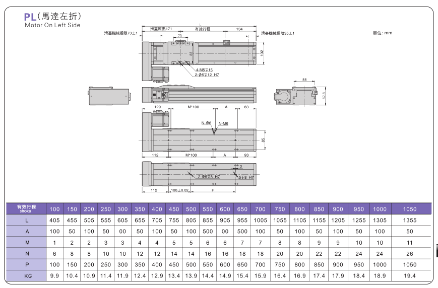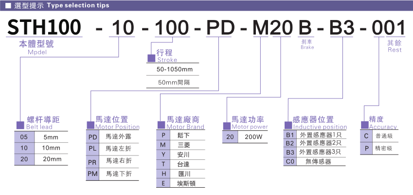 ■ 山社滑臺STH100系列螺桿樣式有效行程表