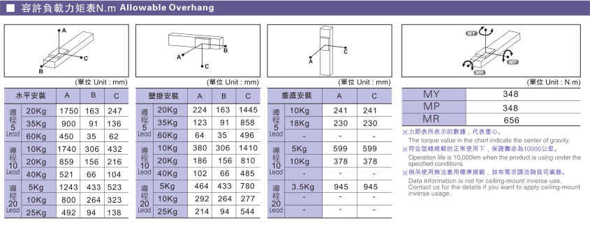 山社滑臺容許負(fù)載力矩選型參數(shù):
