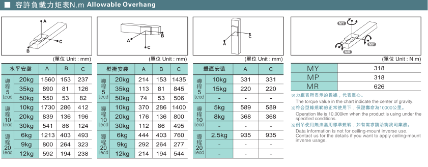 山社滑臺容許負(fù)載力矩選型參數(shù):