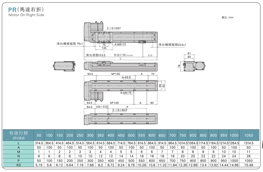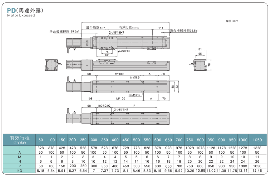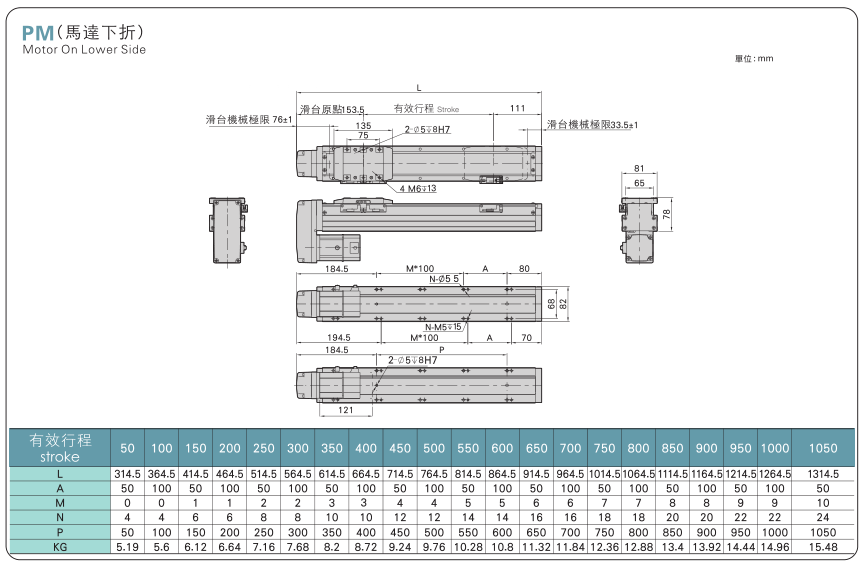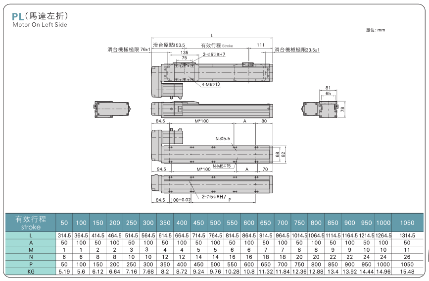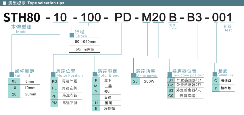 ■ 山社滑臺STH80系列螺桿樣式有效行程表