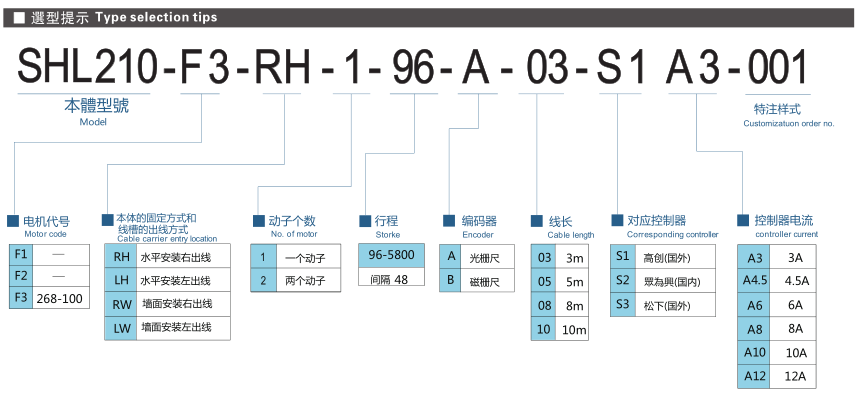 ■ 山社線性馬達(dá)模組SHL210-F3系列選型參數(shù)表