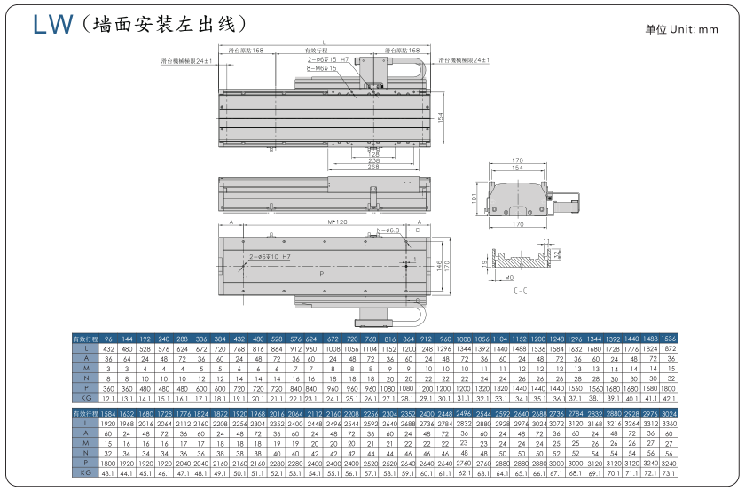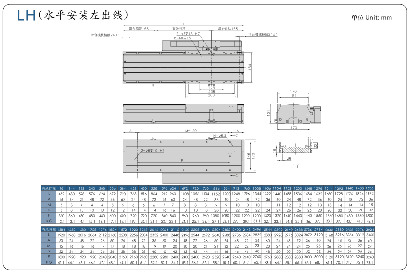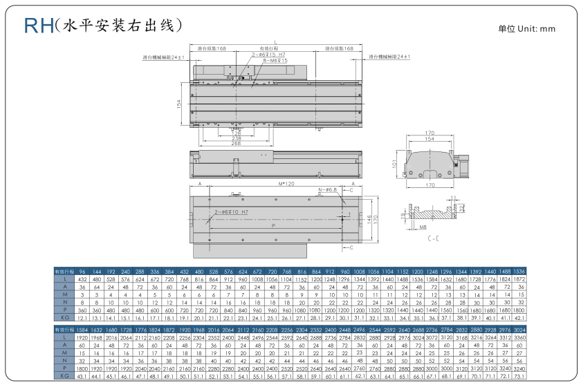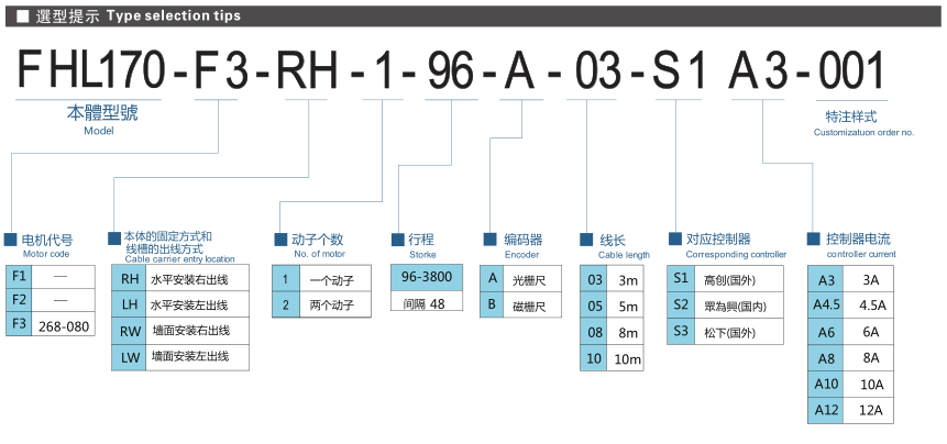 ■ 山社線性馬達(dá)模組SHL170-F3系列選型參數(shù)表