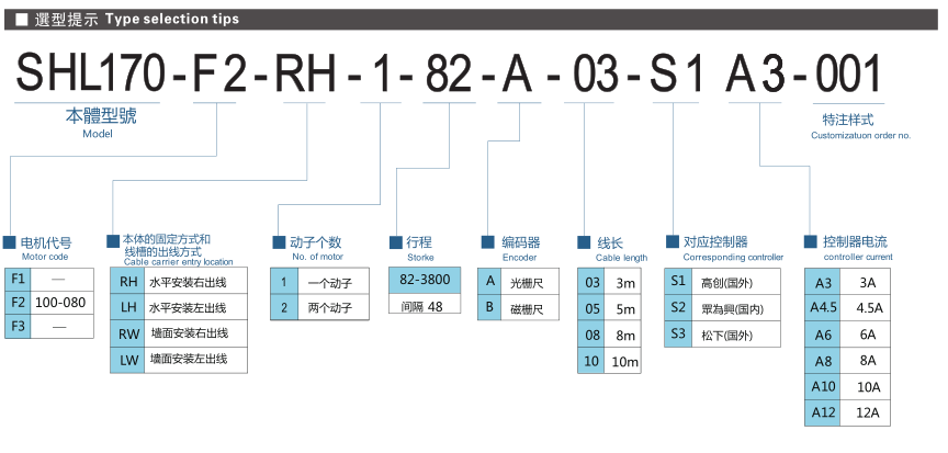 ■ 山社線性馬達(dá)模組SHL170-F2系列選型參數(shù)表