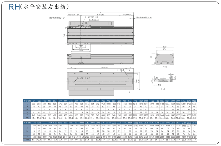 ■ 山社線性馬達(dá)模組SHL170-F2系列一般環(huán)境有效行程表