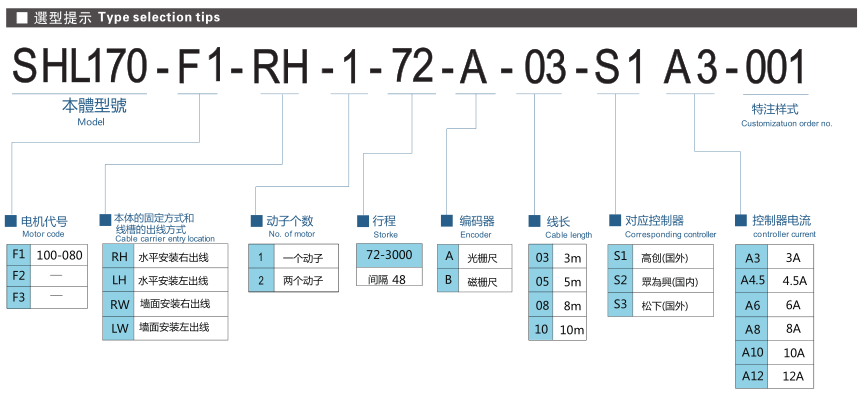 ■ 山社線性馬達(dá)模組SHL170-F1系列選型參數(shù)表