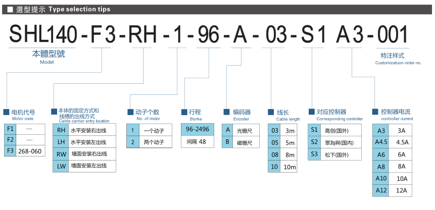 ■ 山社線性馬達(dá)模組SHL140-F3系列選型參數(shù)表