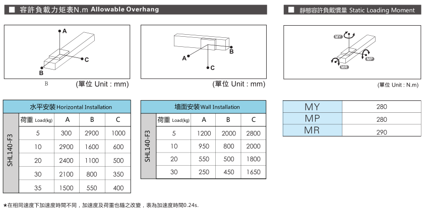 山社線性馬達(dá)模組容許負(fù)載力矩選型參數(shù):