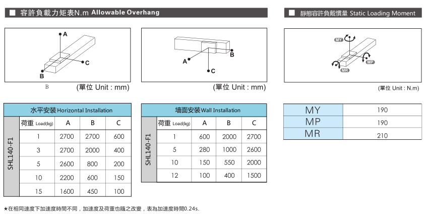 山社線性馬達(dá)模組容許負(fù)載力矩選型參數(shù):