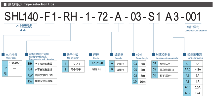 ■ 山社線性馬達(dá)模組SHL140-F1系列選型參數(shù)表