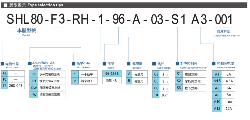 ■ 山社線性馬達模組SHL80-F3系列選型參數表