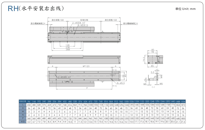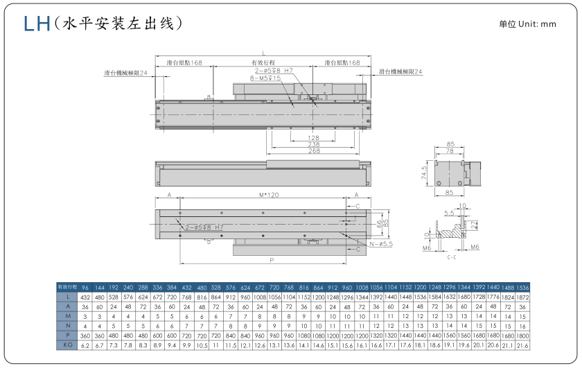 ■ 山社線性馬達模組SHL80-F3系列一般環(huán)境有效行程表