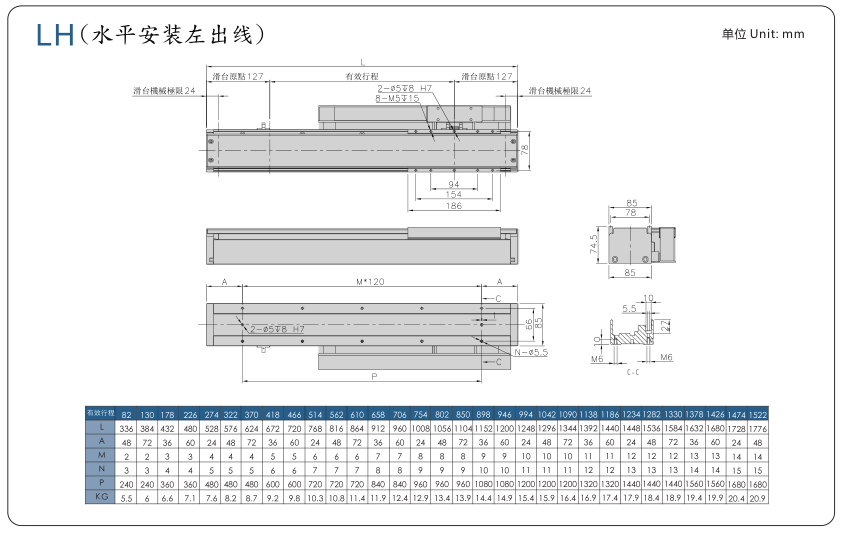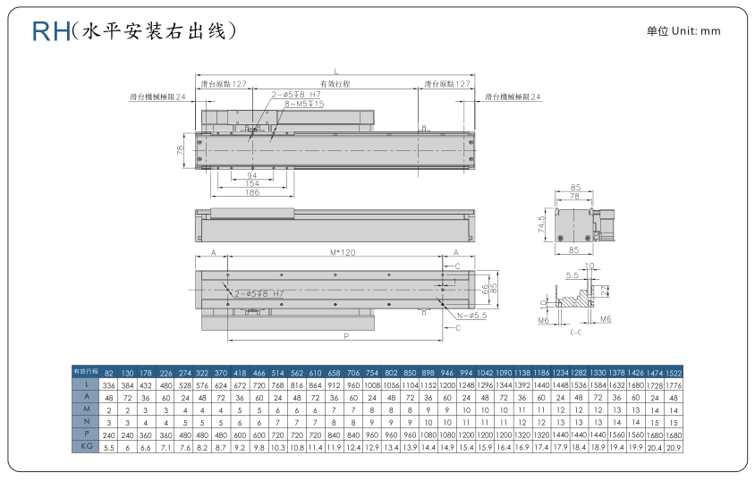 ■ 山社線性馬達(dá)模組SHL80-F2系列一般環(huán)境有效行程表