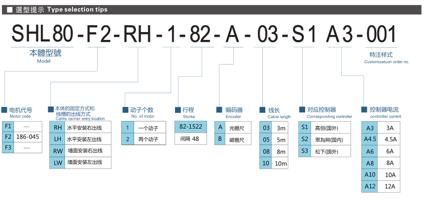 ■ 山社線性馬達(dá)模組SHL80-F2系列選型參數(shù)表