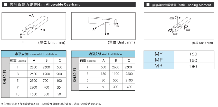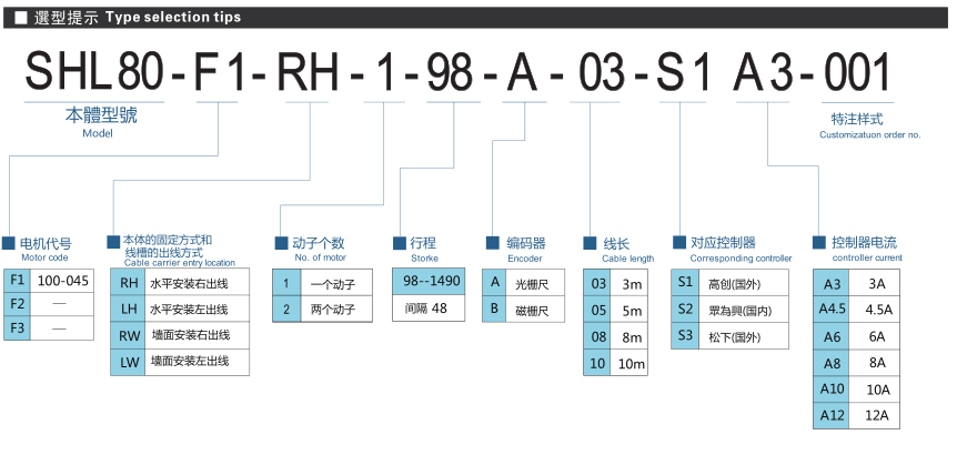 ■ 山社線性馬達(dá)模組SHL80-F1系列選型參數(shù)表