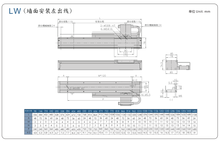 山社線性馬達(dá)模組選型參數(shù):