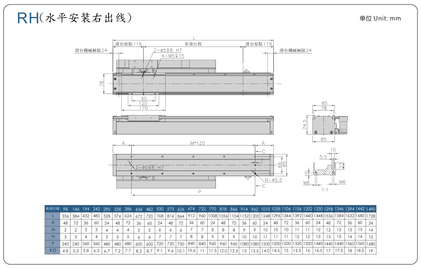 ■ 山社線性馬達(dá)模組SHL80-F1系列一般環(huán)境有效行程表