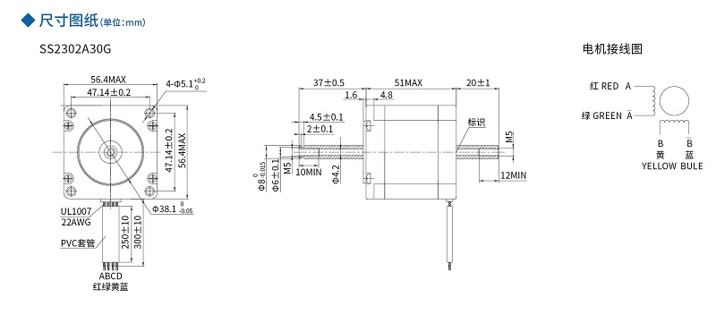 ■ 57mm系列通孔步進(jìn)電機(jī)尺寸圖及接線圖