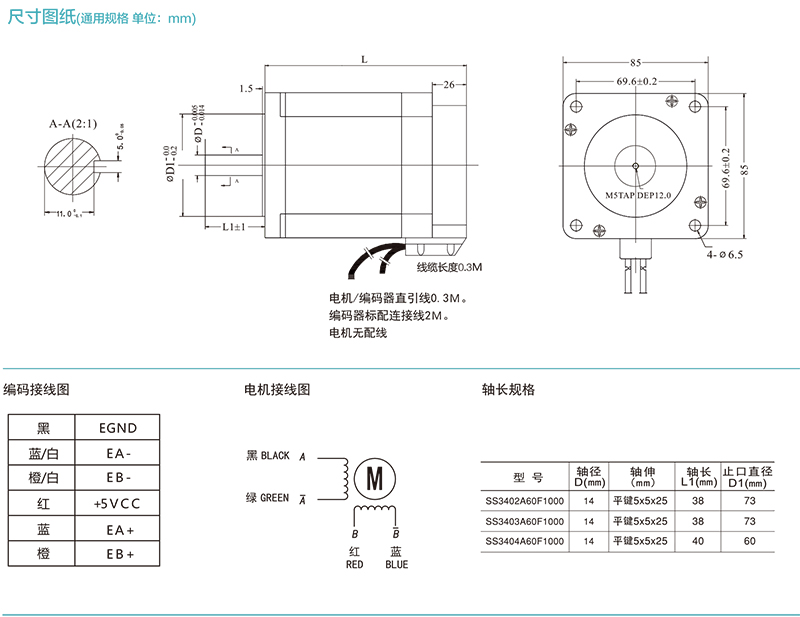 ■ 86mm系列閉環(huán)步進電機尺寸圖及接線圖