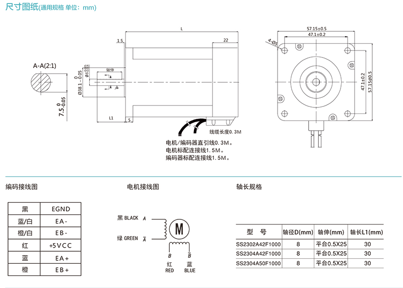 ■ 57mm系列閉環(huán)步進(jìn)電機(jī)尺寸圖及接線(xiàn)圖