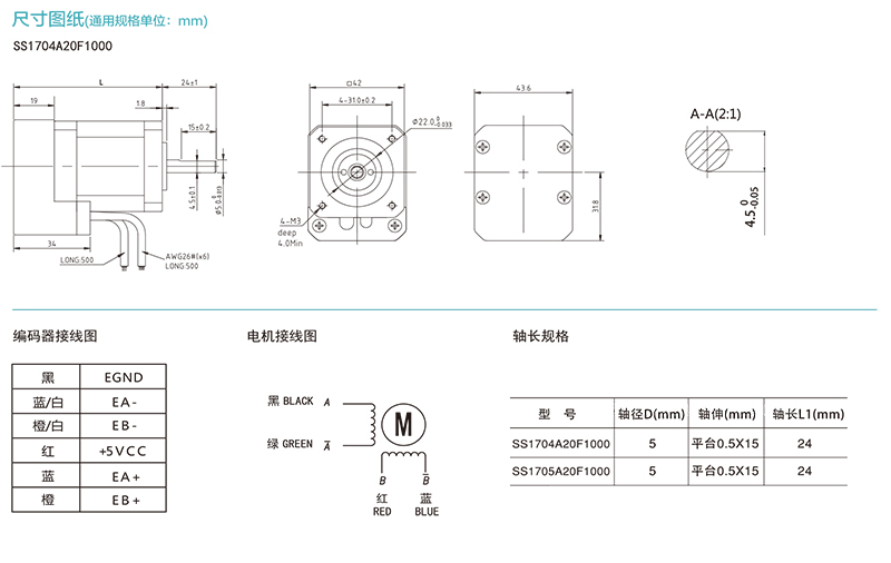■ 42mm系列閉環(huán)步進(jìn)電機(jī)尺寸圖及接線圖