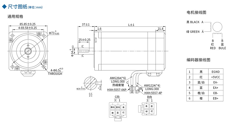 ■ 86mm系列閉環(huán)步進(jìn)電機(jī)尺寸圖及接線圖