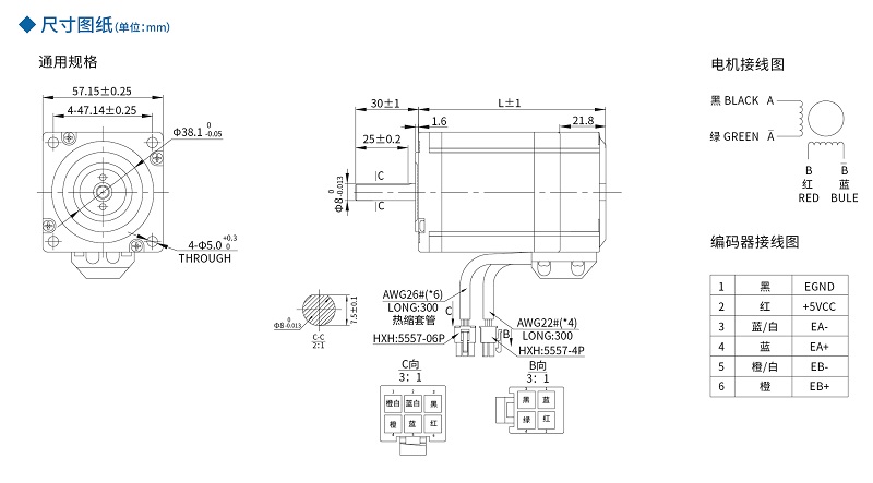 ■ 57mm系列閉環(huán)步進(jìn)電機(jī)尺寸圖及接線圖