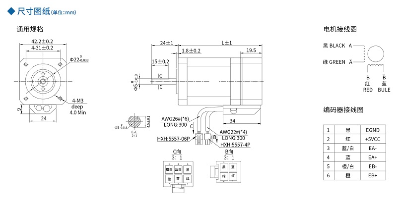 ■ 42mm系列閉環(huán)步進(jìn)電機(jī)尺寸圖及接線圖
