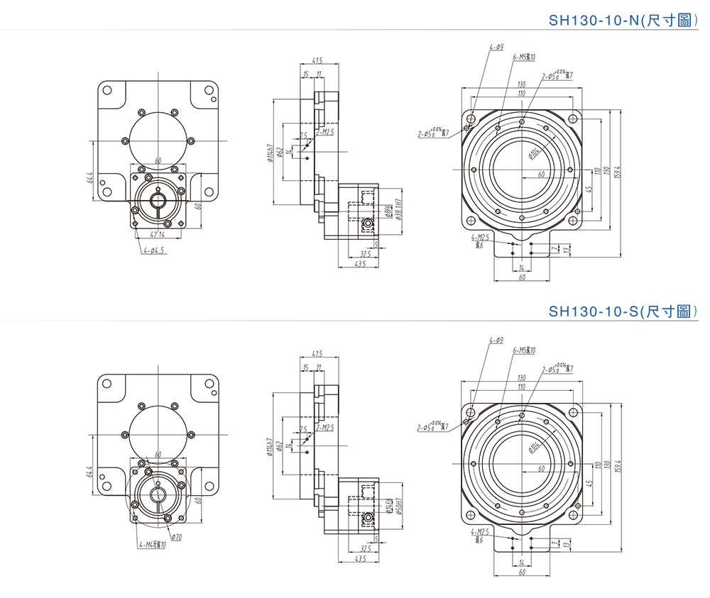 ■SH130-10-N/S中空旋轉平臺尺寸圖