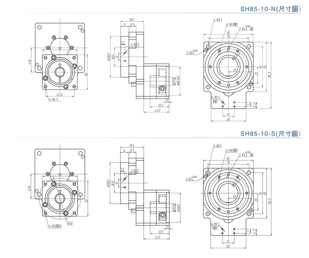 ■SH85-10-N/S中空旋轉(zhuǎn)平臺(tái)尺寸圖