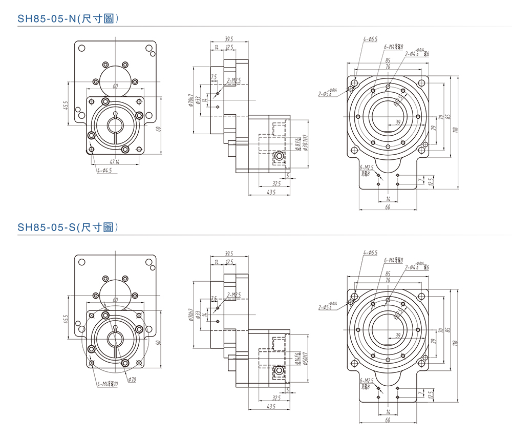 ■SH85-05-N/S中空旋轉(zhuǎn)平臺尺寸圖