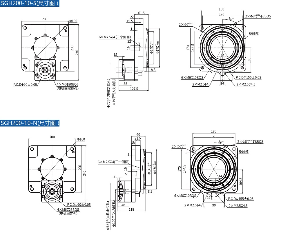 ■ SGH200-10-N/S中空旋轉(zhuǎn)平臺(tái)尺寸圖