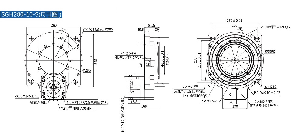 ■ SGH280-10- S中空旋轉(zhuǎn)平臺(tái)尺寸圖