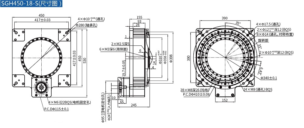 ■ SGH450-18- S中空旋轉(zhuǎn)平臺(tái)尺寸圖