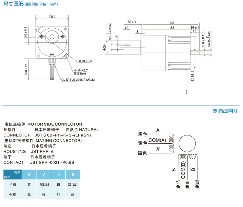 ■ 57mm系列齒輪減速步進(jìn)電機(jī)尺寸圖及接線圖