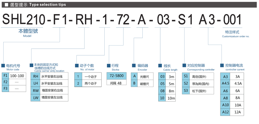 ■ 山社線性馬達(dá)模組SHL210-F1系列選型參數(shù)表