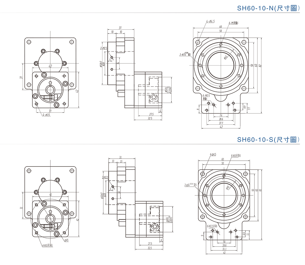 ■SH60-10-N/S中空旋轉(zhuǎn)平臺(tái)尺寸圖